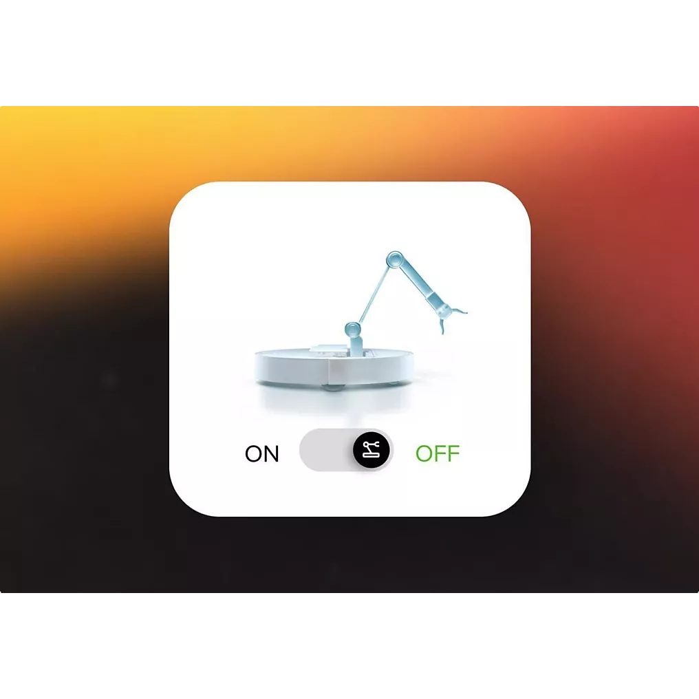 Equipé de capteurs, d’une caméra et d’un éclairage, le bras articulé de l’aspirateur robot connait parfaitement sa position, son environnement et mesure le poids des objets avec précision.