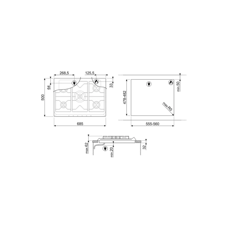 - Dimension de la surface de cuissonDiamètre 54,5 cm